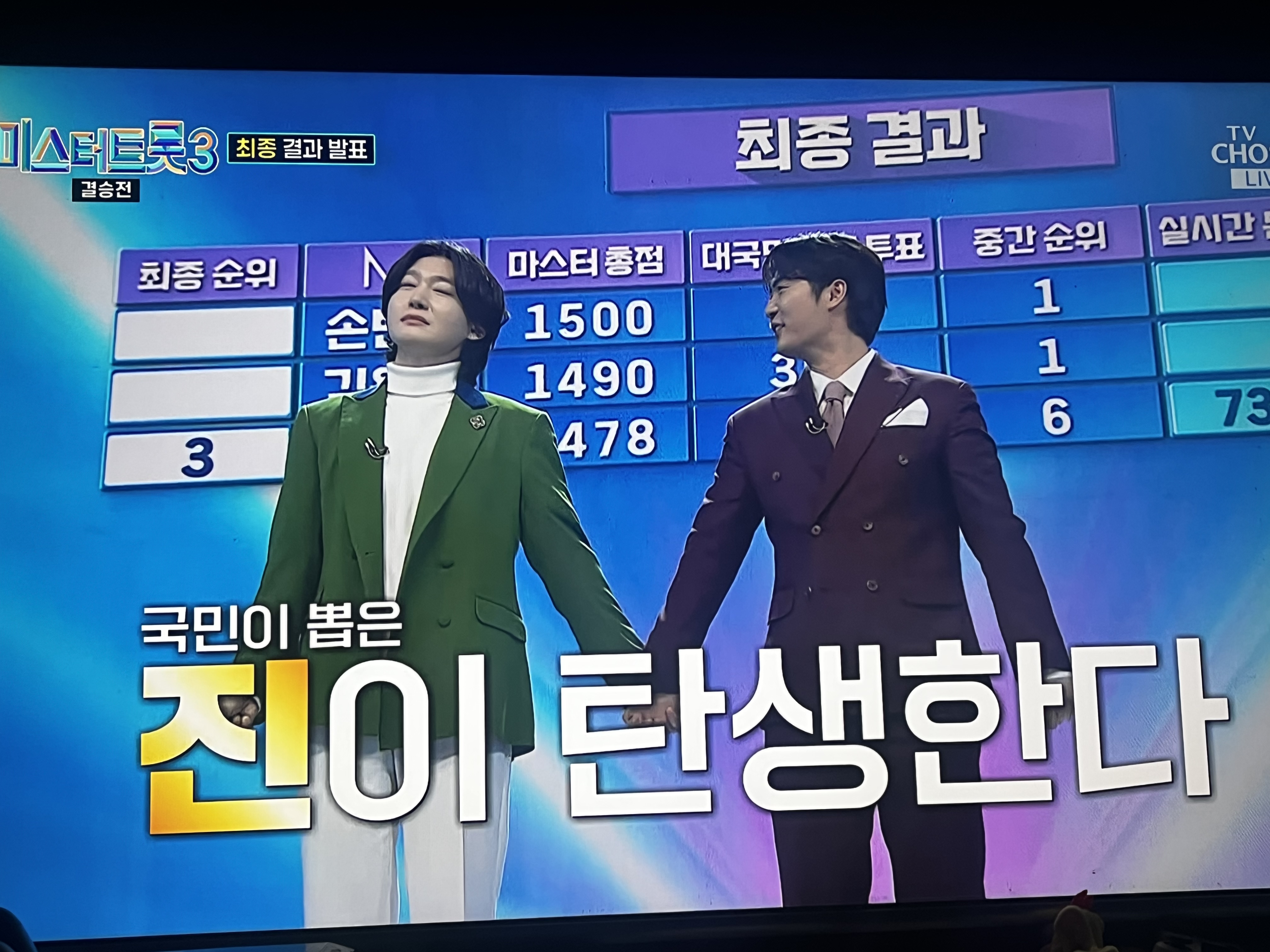 생중계로 진행되었던 미스터 트롯3는 장장 4시간이 넘는 시간이 지나 최종 3명 중에 진, 선, 미가 결정을 짓게 되었다.