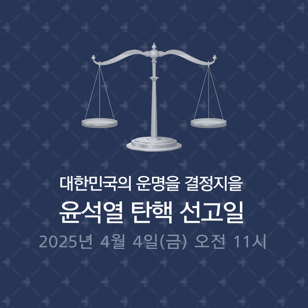 헌법재판소는 2025년 4월 4일 오전 11시, 서울 종로구 헌법재판소 대심판정에서 탄핵심판 선고를 진행합니다.