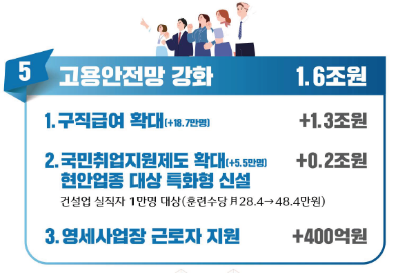 - 구직급여 확대 (+1.3조원): 18.7만명 추가 지원.