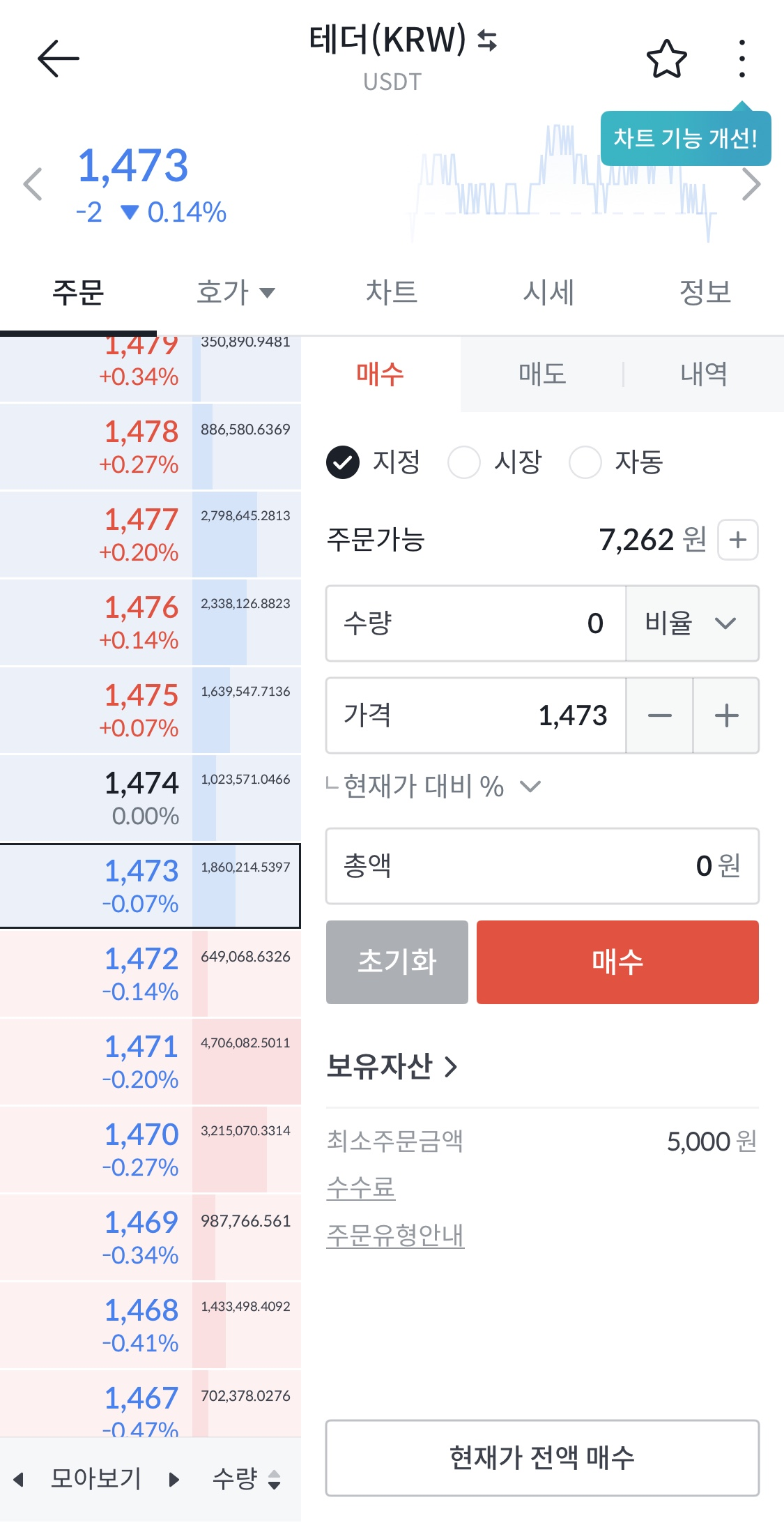 - "원화마켓"에서 USDT(테더) 구매