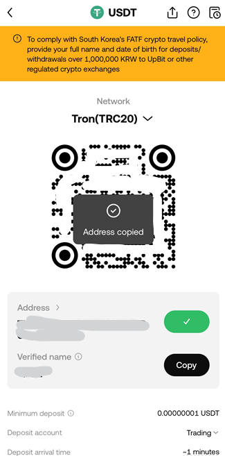 - 입금 주소 복사