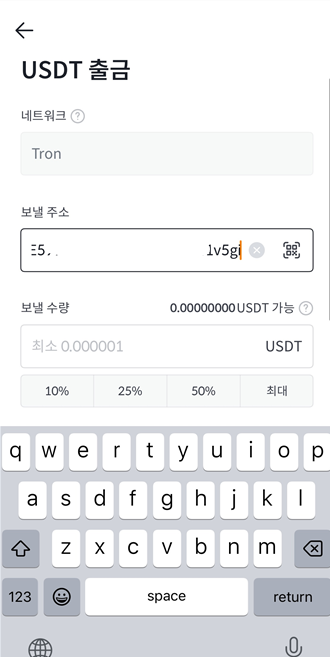 이제 구매한 USDT를 OKX로 전송하는 과정으로 넘어가겠습니다.