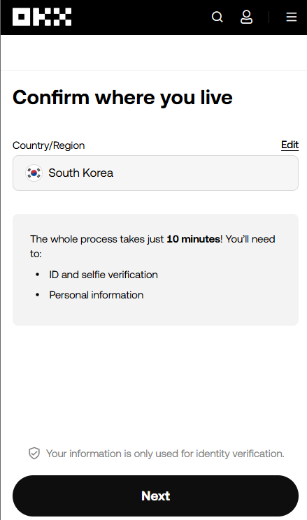 - OKX 거래소 가입 및 KYC 인증