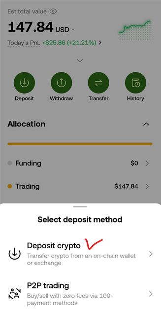 - OKX 지갑에서 입금 완료 확인