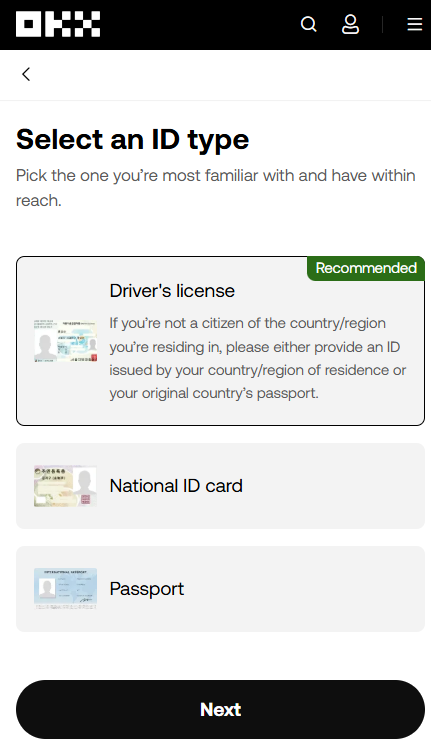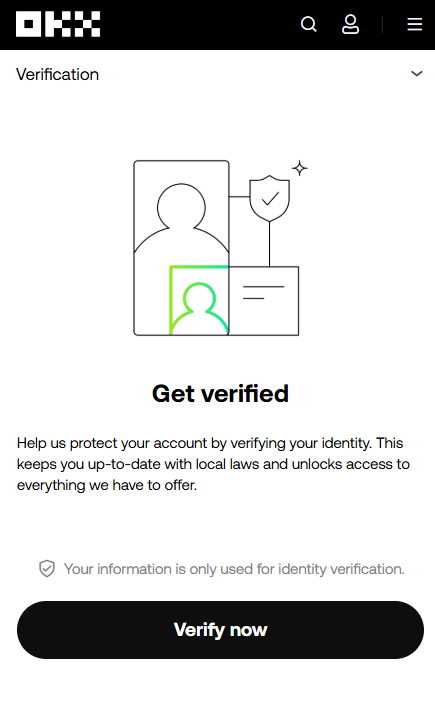 OKX에서 원활한 거래를 위해서는 KYC 인증이 필요합니다.