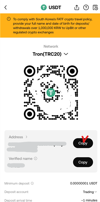✅ 업비트 또는 빗썸에서 USDT 구매 후 OKX로 전송