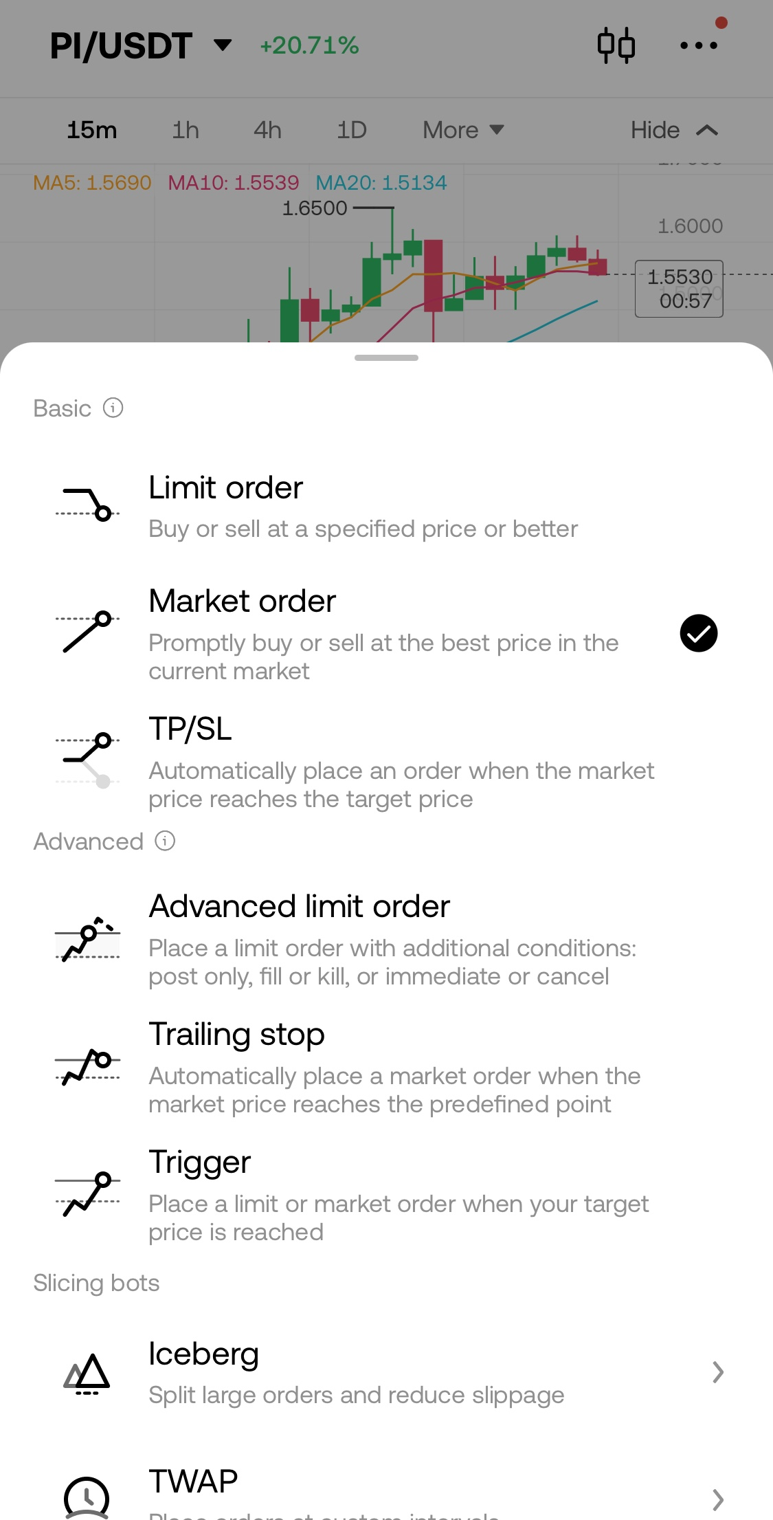 - "Market Order(시장가 주문)" → 현재 가격으로 즉시 매수